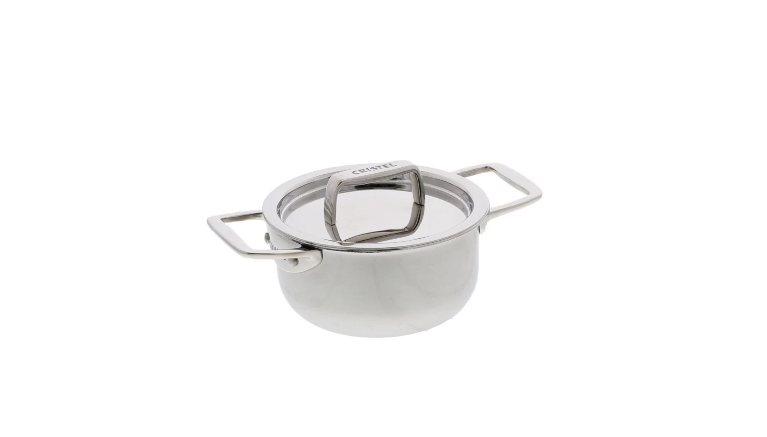 Het Franse topmerk Cristel ontwikkelde de lijn Castel’Pro voor gebruik in de professionele keuken zowel als thuis. Deze pannen zijn opgebouwd uit vijf verschillende lagen. Aan de buitenzijde zit een laag 18/0 edelstaal, gevolgd door een laag aluminium, een laag versterkt aluminium, een laag aluminium en aan de binnenzijde een laag 18/10 edelstaal. De pan heeft een dichtgelegde gietrand, waardoor de pan vaatwasmachinebestendig is. De gegoten roestvrijstalen grepen en stelen zitten met roestvrijstalen nagels aan de pan vast en geleiden weinig warmte. Door het gebruik van 18/0 staal zijn Castel’Pro pannen zowel geschikt voor alle warmtebronnen en om in de oven te gebruiken.