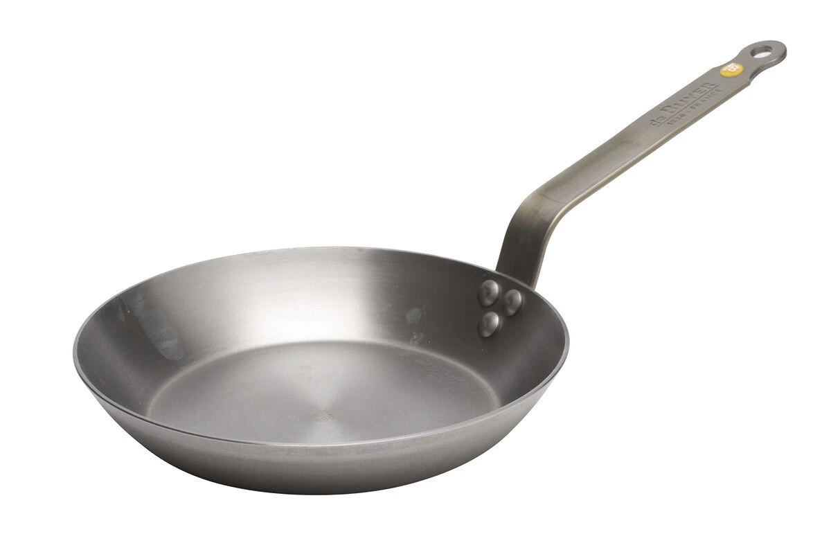 Zijn uw etenswaren aangebakken, strooi dan een hand zout in de plaatstalen pan en zet deze op het vuur. Hierdoor weekt het vuil los, en kunt u dit met een doekje eenvoudig verwijderen zonder uw De Buyer pan te beschadigen.
