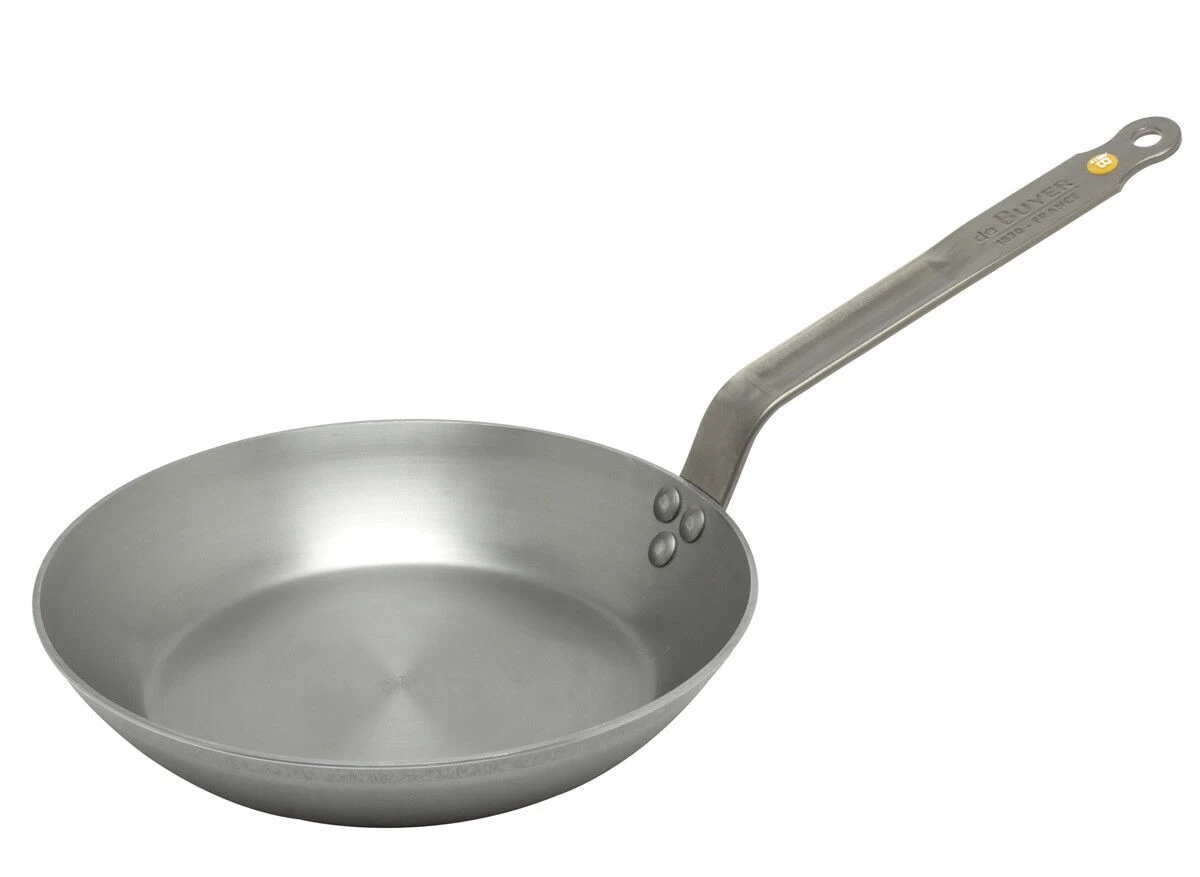 Zijn uw etenswaren aangebakken, strooi dan een hand zout in de plaatstalen pan en zet deze op het vuur. Hierdoor weekt het vuil los, en kunt u dit met een doekje eenvoudig verwijderen zonder uw De Buyer pan te beschadigen.