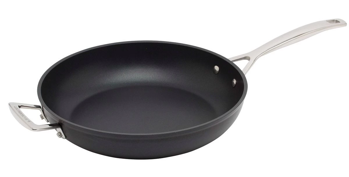 De Le Creuset Les Forgées TNS diepe koekenpan of sauteerpan heeft een diameter van 30 cm en is van geanodiseerd aluminium. Tegenover de steel heeft de pan een tegengreep, waardoor de pan gemakkelijk te hanteren wanneer er eten in zit. De pan heeft een anti-aanbaklaag zonder PFOA. Gebruik de pan met anti-aanbaklaag om gerechten voor 8 tot 10 personen te bereiden.