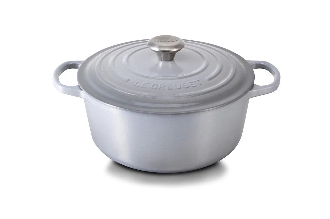 De mist gray – grijze – Signature braadpan van Le Creuset heeft een diameter van 20 cm. De ronde pan van geëmailleerd gietijzer heeft een inhoud van 2,4 liter, bedoeld voor 2 tot 4 personen. De braad-/ stoofpan heeft extra grote grepen. De ronde vorm maakt de Signature braadpan geschikt voor soep en stoofgerechten als boeuf bourguignon.