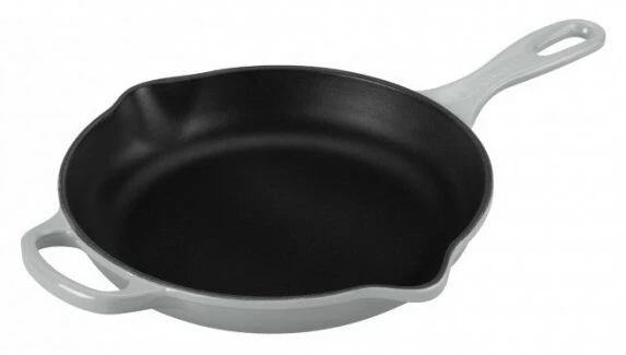 De skillet van Le Creuset is gemaakt van grijskleurig geëmailleerd gietijzer. De pan heeft een diameter van 26 cm en heeft hoge wanden, waardoor de pan als sauteuse tegebruiken is. Gebruik de skillet voor het bakken van vlees of eieren en het bereiden van gegratineerde gerechten. Door de tegengreep is de pan gemakkelijk te tillen.