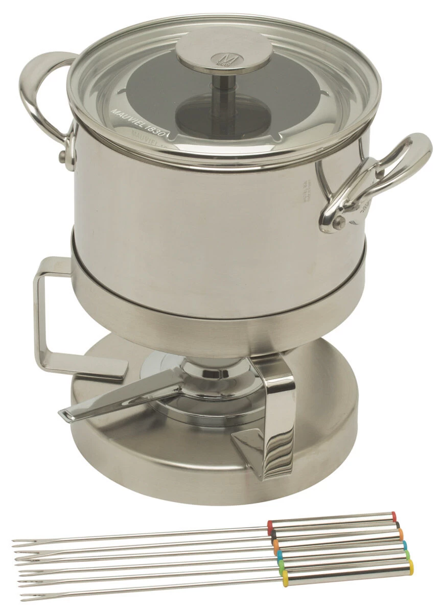 De Mauviel M’Cook fondueset bestaat uit een fonduepan met een inhoud van 3 liter, een roestvrijstalen rechaud met spiritusbrander en 6 fonduevorken. Bij de fonduepan worden een glazen deksel en een spat-ring meegeleverd. De fonduepan kan niet alleen op op het rechaud worden gebruikt, maar is ook geschikt voor gebruik op alle warmtebronnen, inclusief inductie.