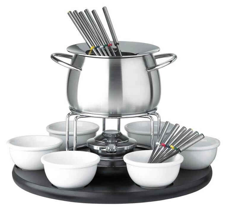 Gebruik de Spring fondueset om tot 6 personen mee te fondueën. De vorken hebben elk een eigen kleur om ze gemakkelijk te kunnen herkennen. Door de gemakkelijke bediening van de gelbrander is de temperatuur van de fondue gemakkelijk te regelen.